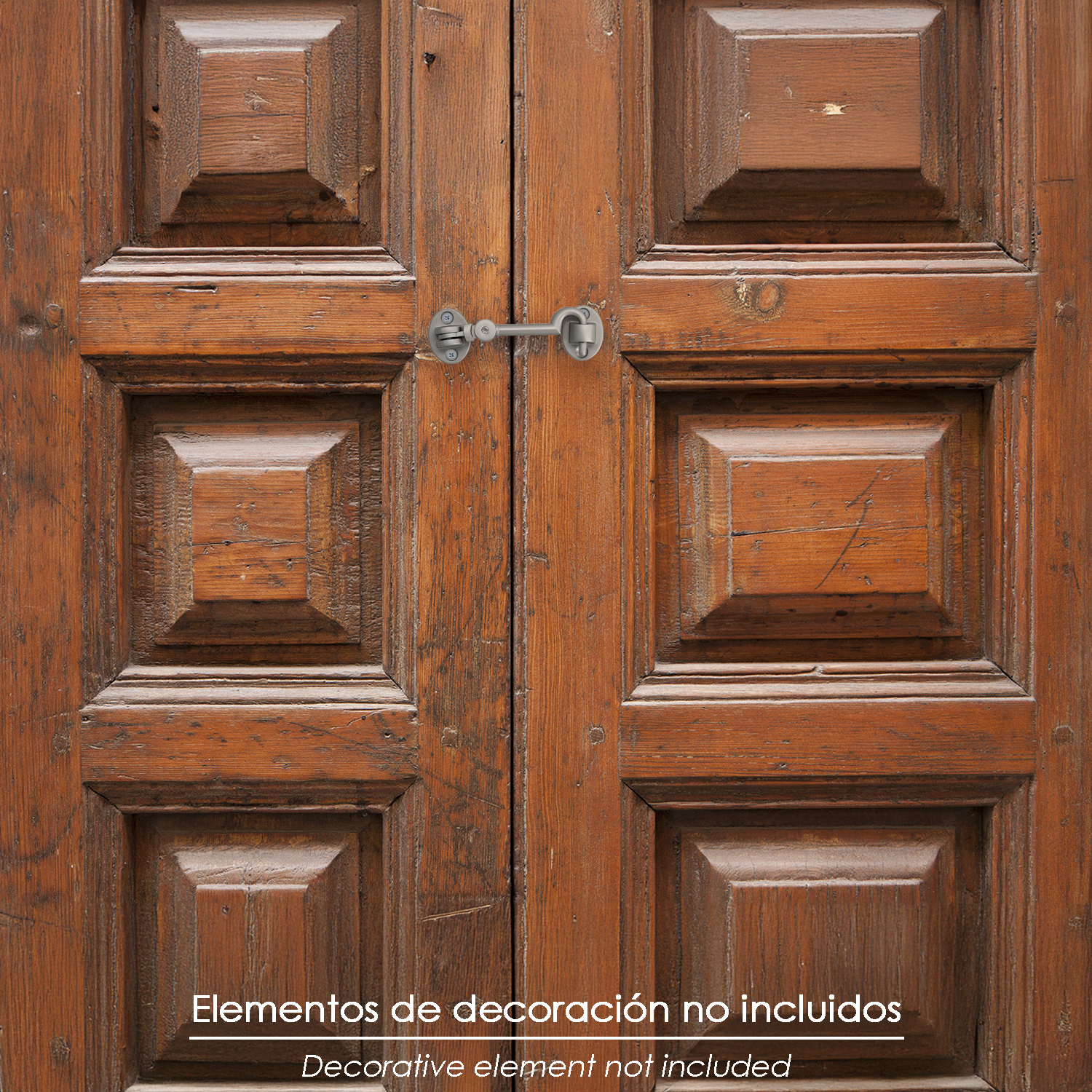 – Instalación rápida. Marca los puntos y con la ayuda de un taladro se hacen los agujeros. Fija la aldabilla con la tornillería incluida