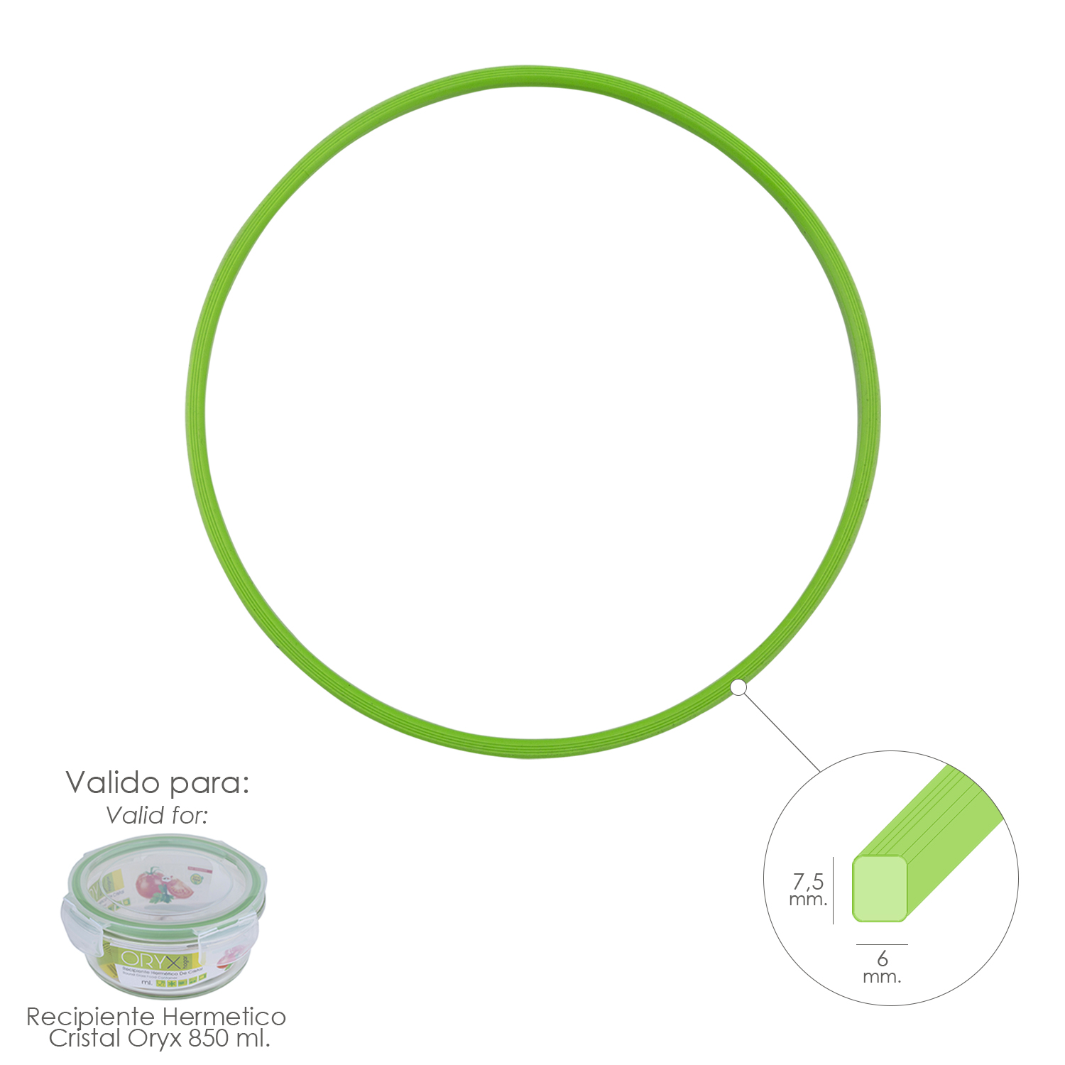 – Valido para Recipiente Hermetico Cristal Redondo 850 ml. Ø 165 x 8 (alt) cm. (Codigo 05024060)