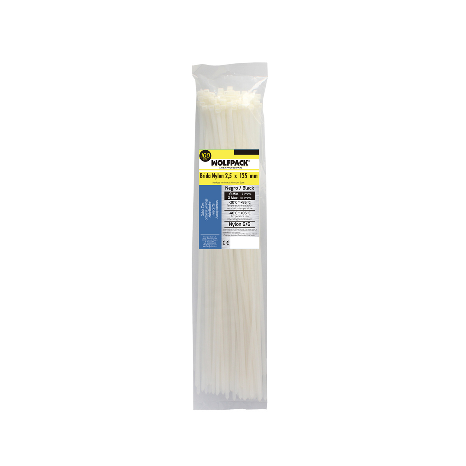 Brida Nylon 100%. Color Natural 2,5 x 135 mm. (Bolsa 100 Unidades)