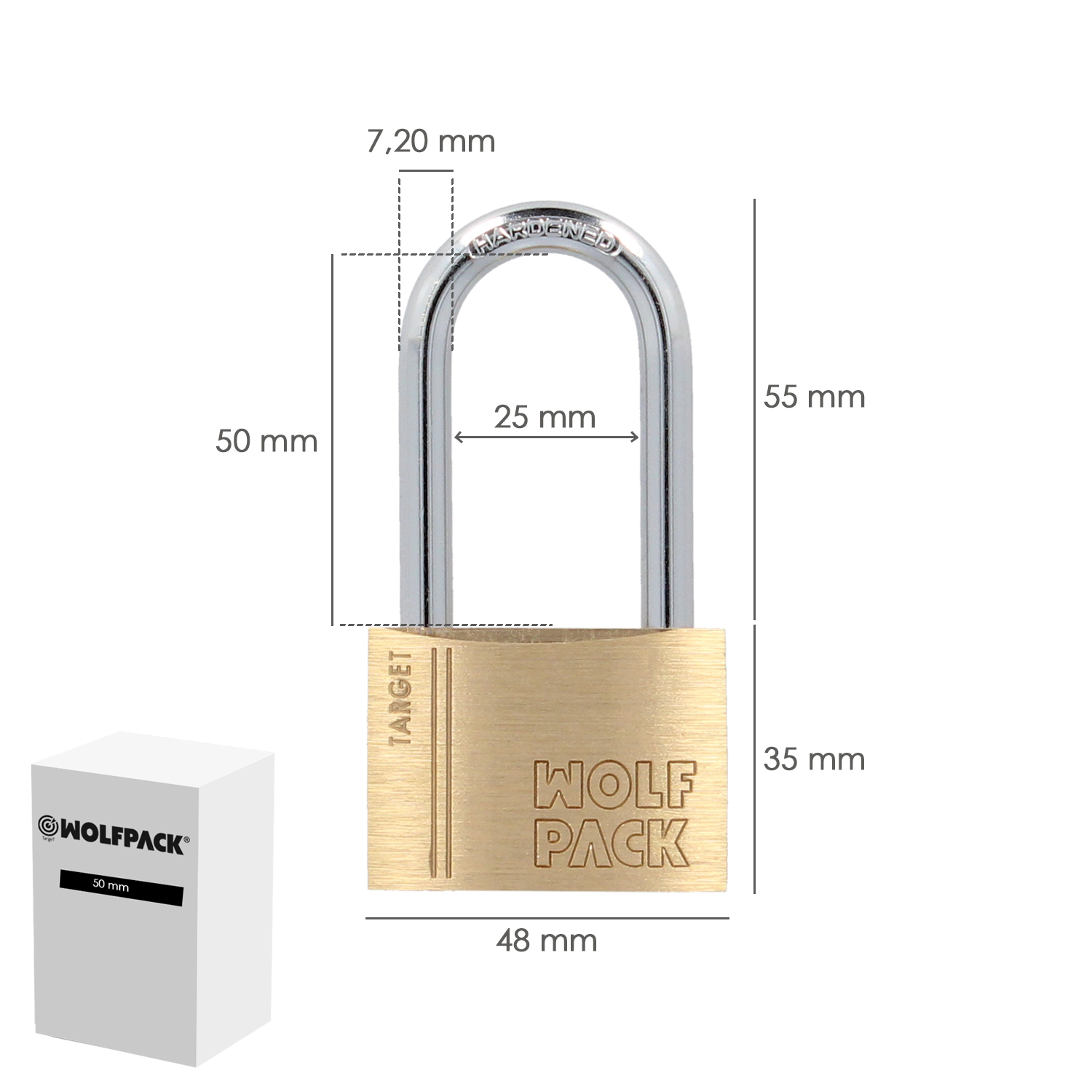 Candado Laton Arco Largo 50 mm.