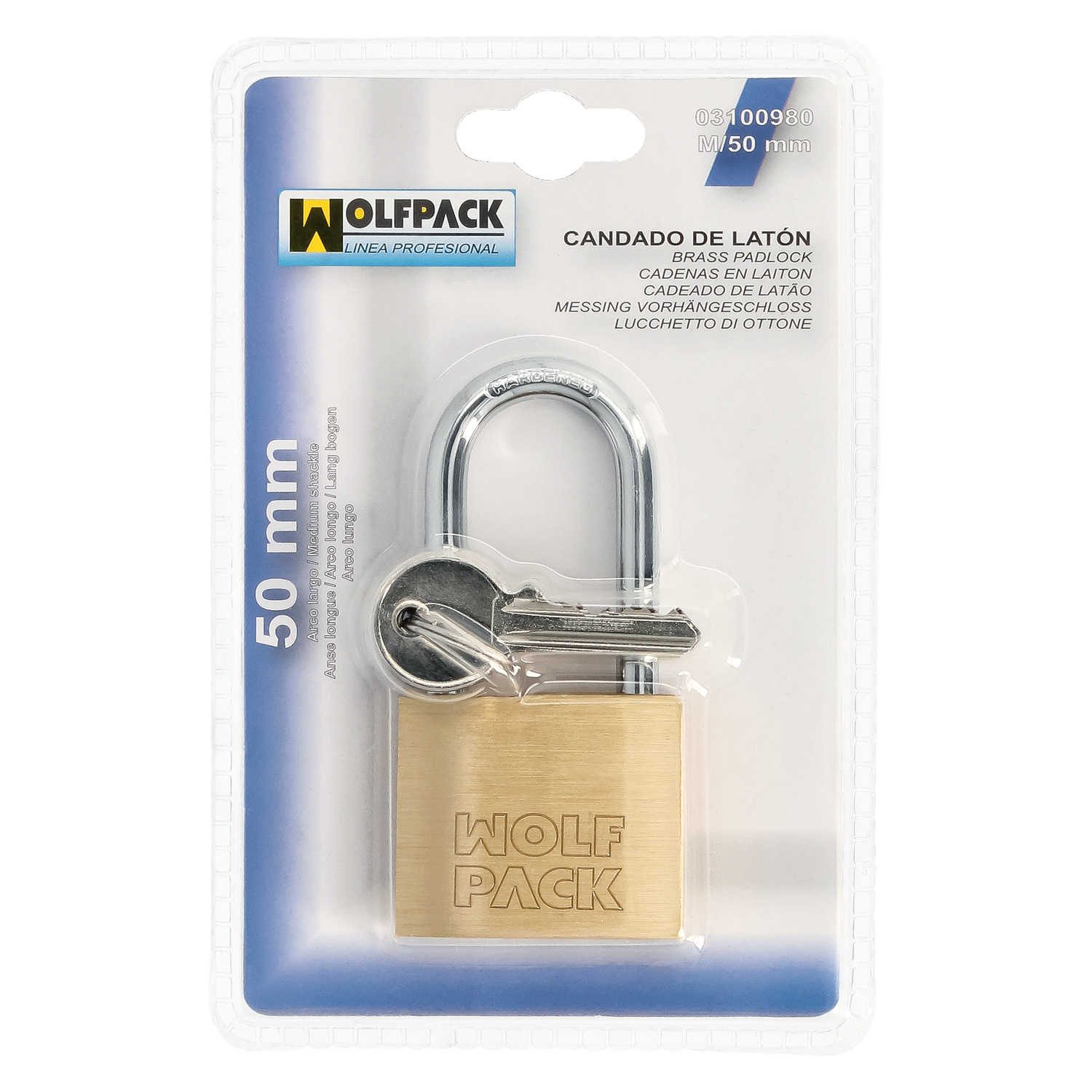 Candado Laton Arco Largo 50 mm. Plus. Blister 1 pieza