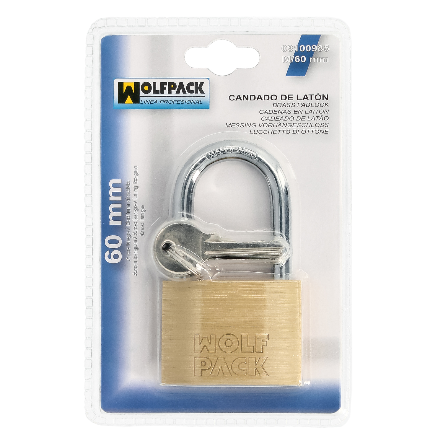 Candado Laton Arco Largo 60 mm. Plus. Blister 1 pieza