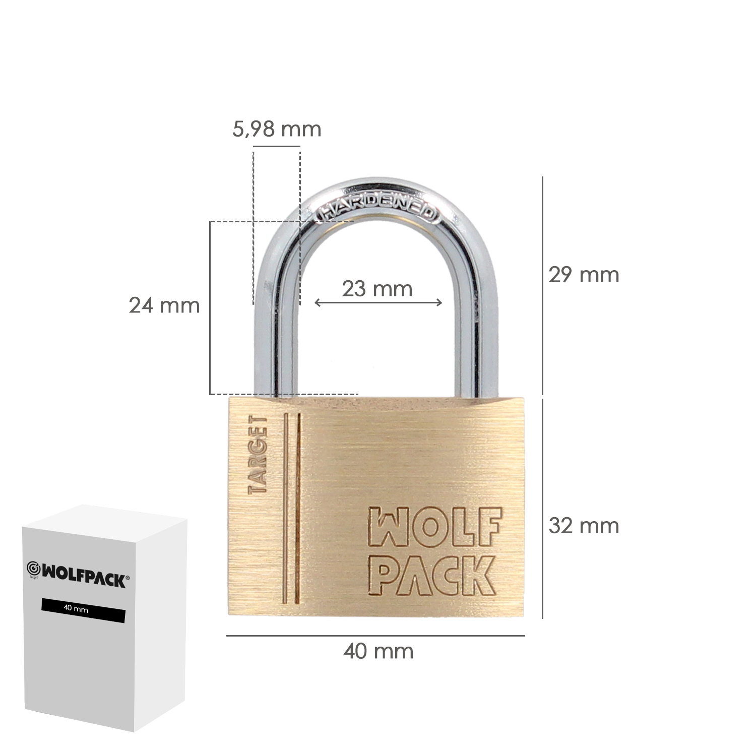 Candado Laton Arco Normal 40 mm. Serie Target. Arco Endurecido. Candado Maletas, Candado Taquillas, Candado Puertas
