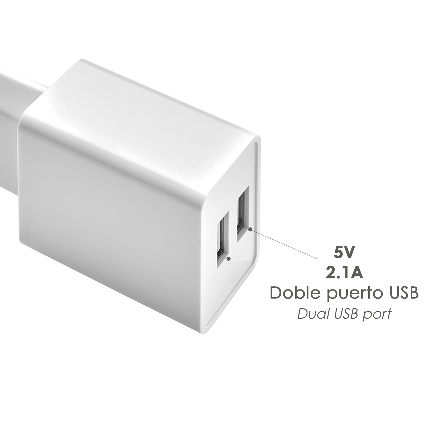 Cargador USB Dos Tomas 2.1 Amperios. 5 V.