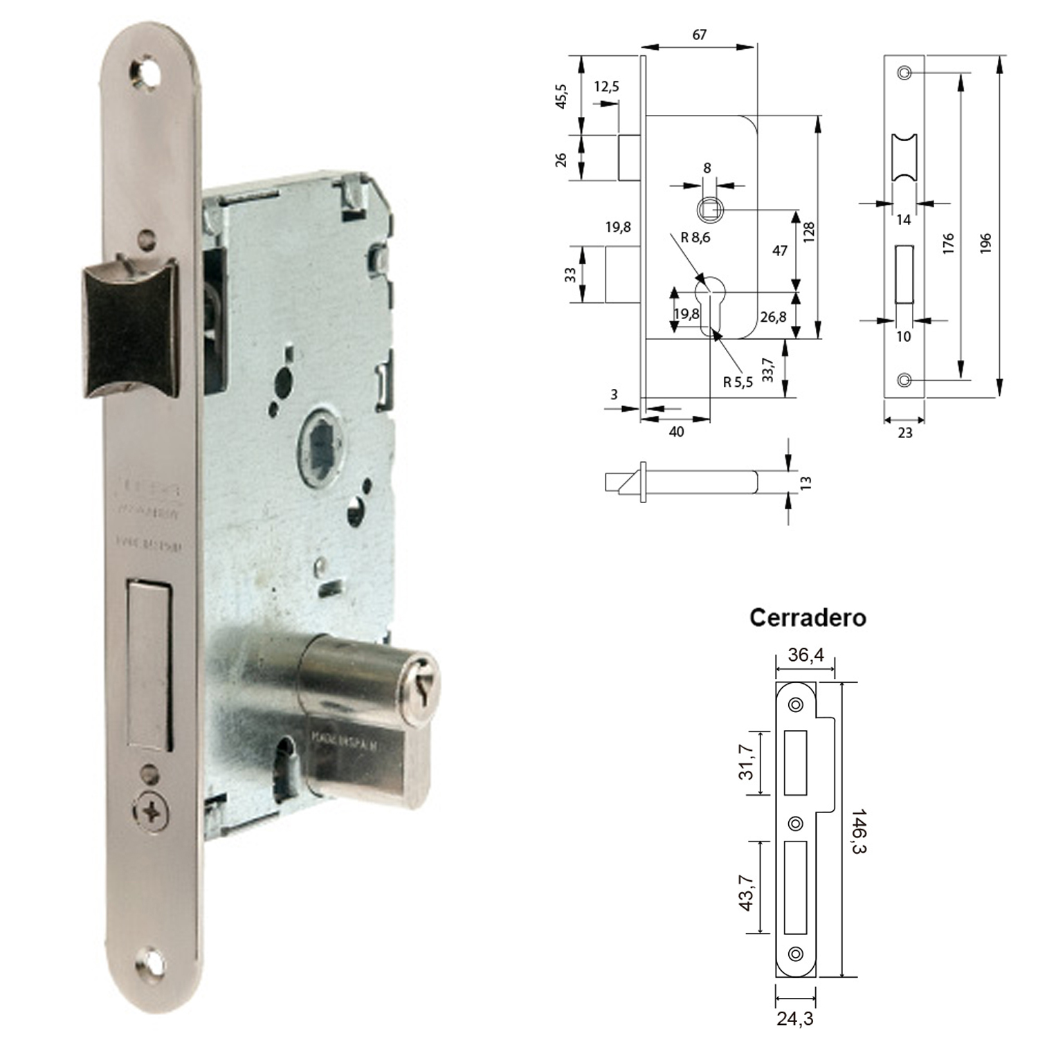 – Cerradura de embutir serie 2010 para puertas de madera.