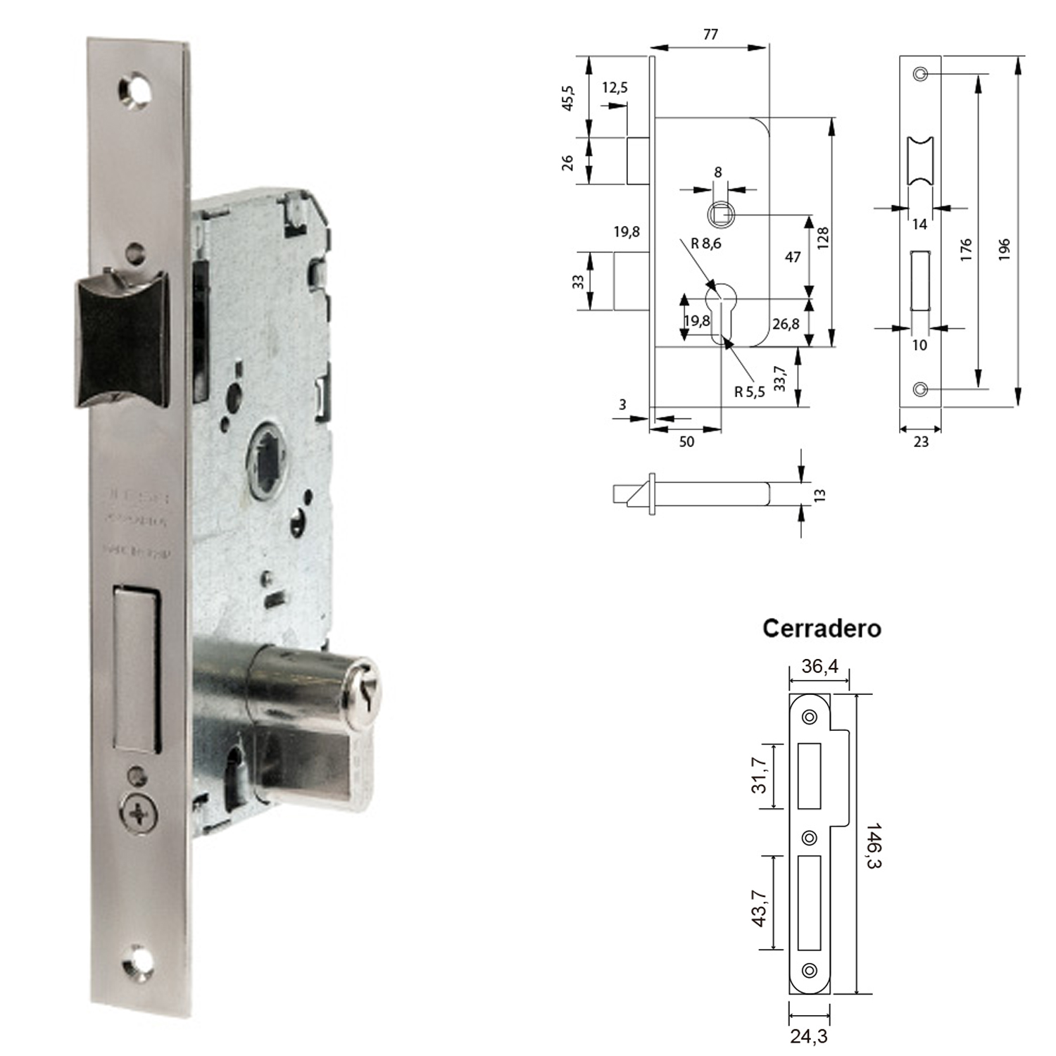 – Cerradura de embutir serie 2010 para puertas de madera.