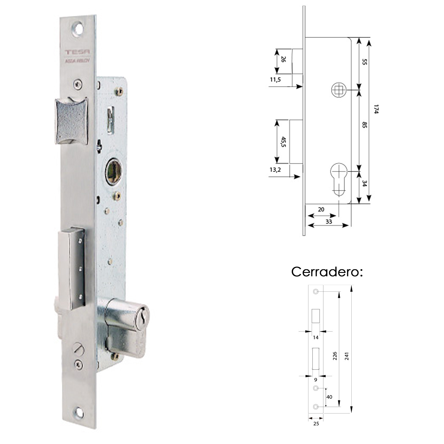 Cerradura Tesa 2210/28/ai sin gancho.
