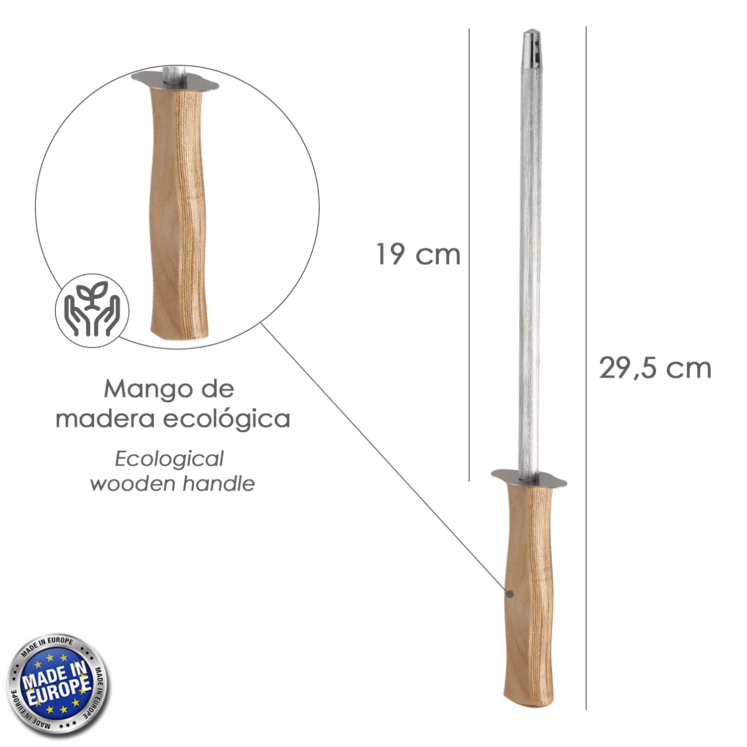 – Mango ergonomico realizado en madera ecologica.