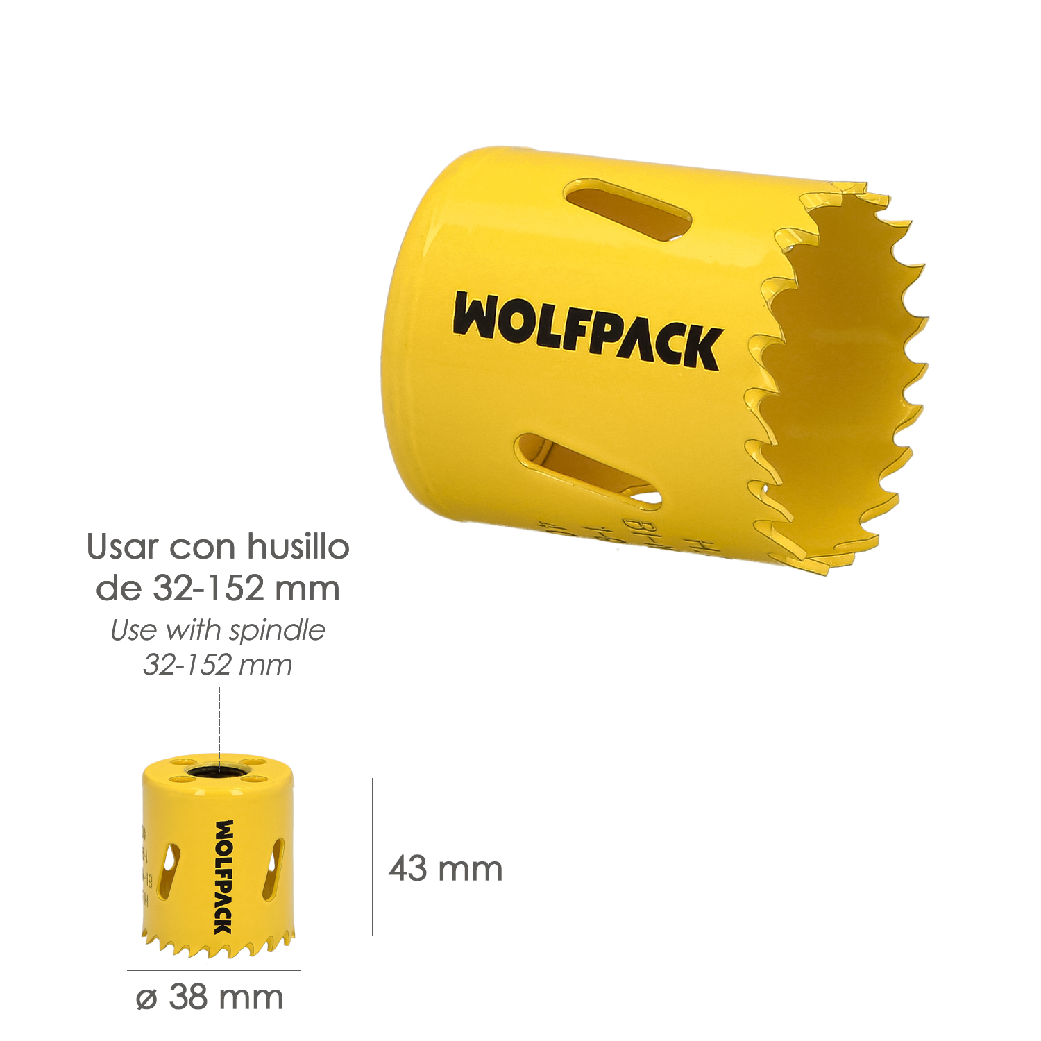 Corona Sierra Bimetal Ø 38 mm. Templado Termico, Base Reforzada. Corona Madera, Broca Agujeros Madera, Acero, Hierro, Plasticos