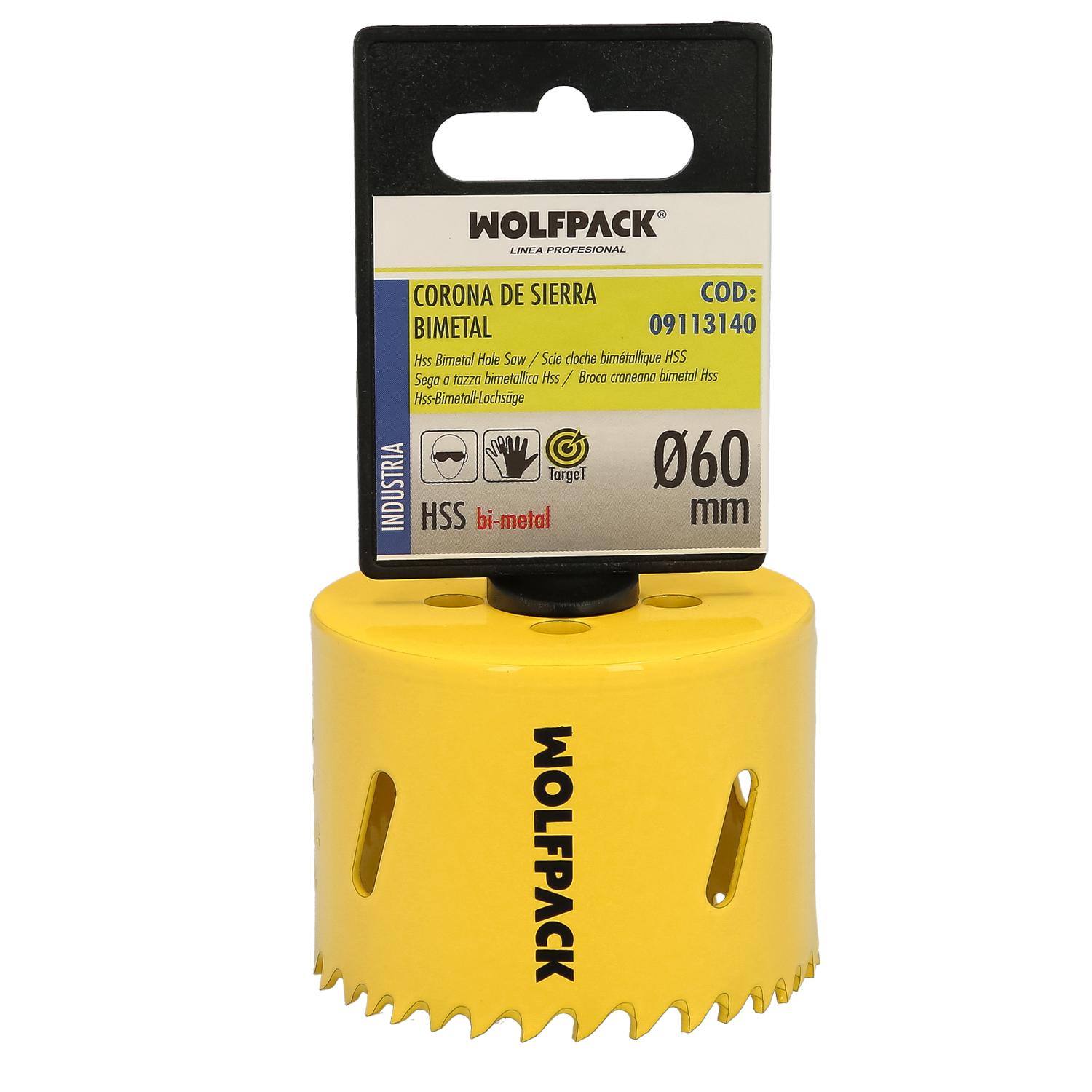 InicioTiendaCoronas bimetalCorona Sierra Bimetal Ø 60 mm. Templado Termico, Base Reforzada. Corona Madera, Broca Agujeros Madera, Acero, Hierro, Plasticos
