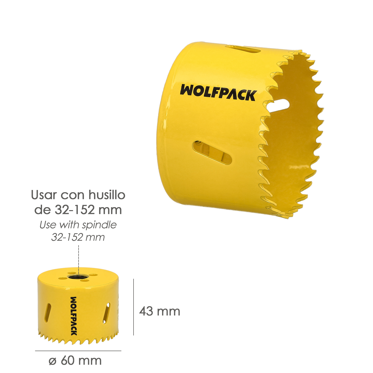 Corona Sierra Bimetal Ø 60 mm. Templado Termico, Base Reforzada. Corona Madera, Broca Agujeros Madera, Acero, Hierro, Plasticos