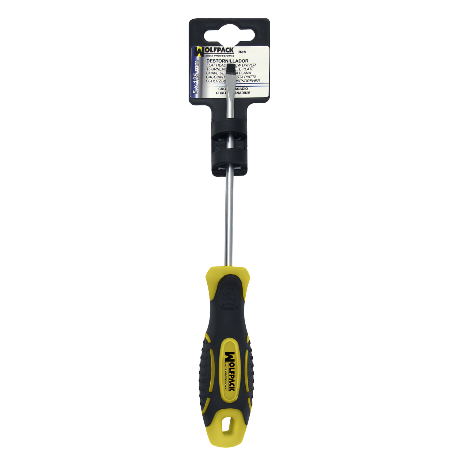 Destornillador Mango Bimaterial Boca Estampada 5×125 mm. Destornillador Plano, Cromo Vanadio,