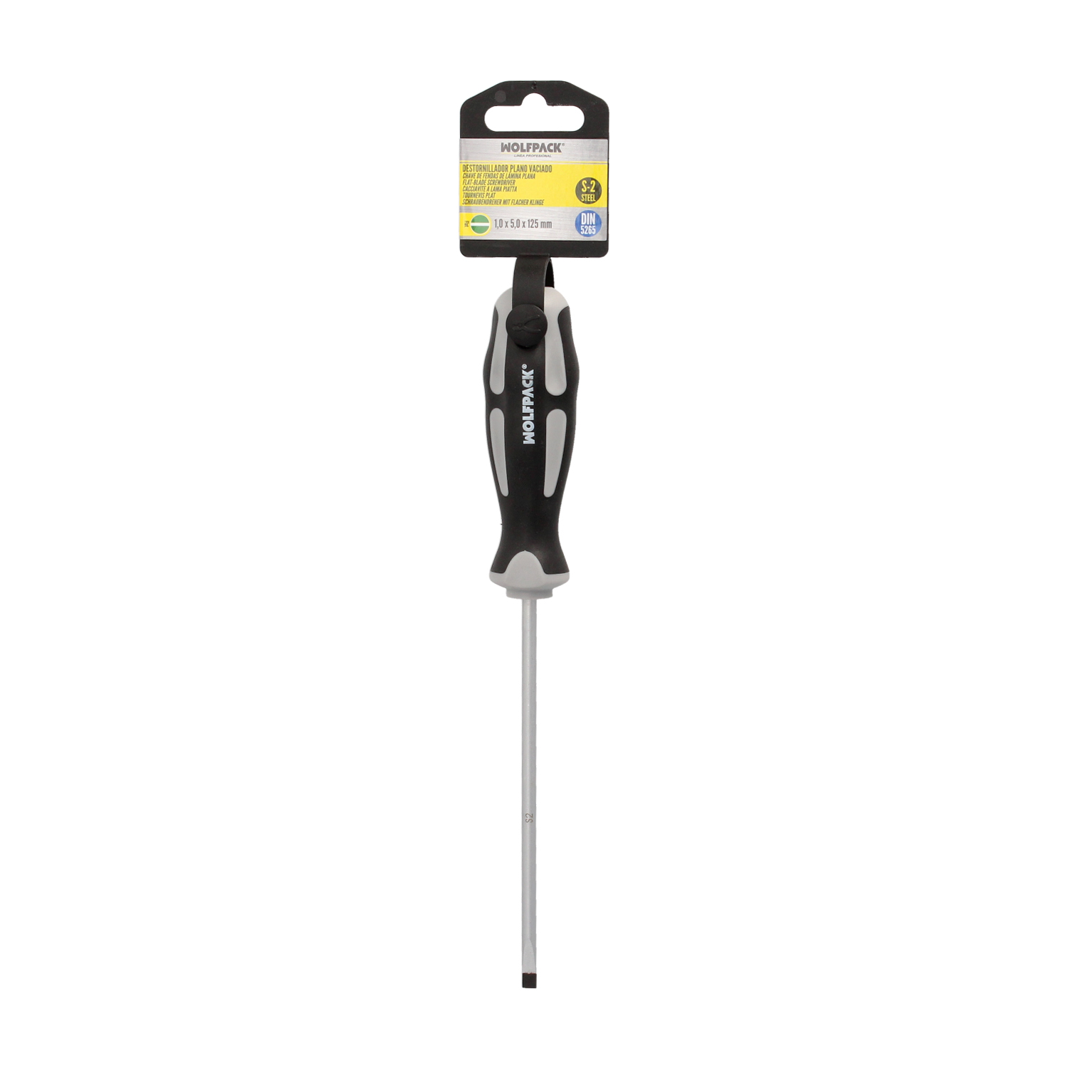 Destornillador Plano Vaciado Acero S2 Mango TPR Bimaterial. Medida 1,0 x Ø 5,0 x 125 mm. DIN5265