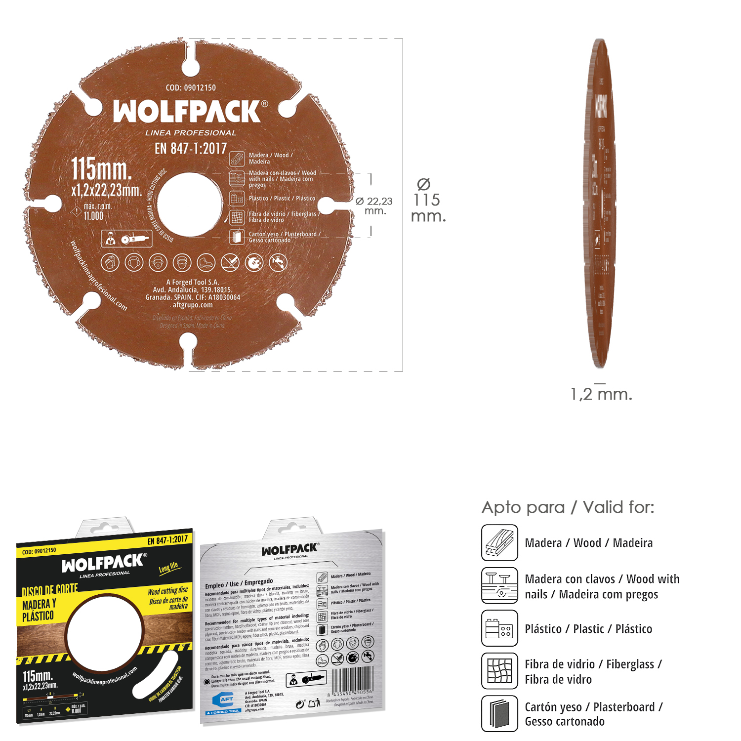 – Grosor del disco: 1.2 mm.