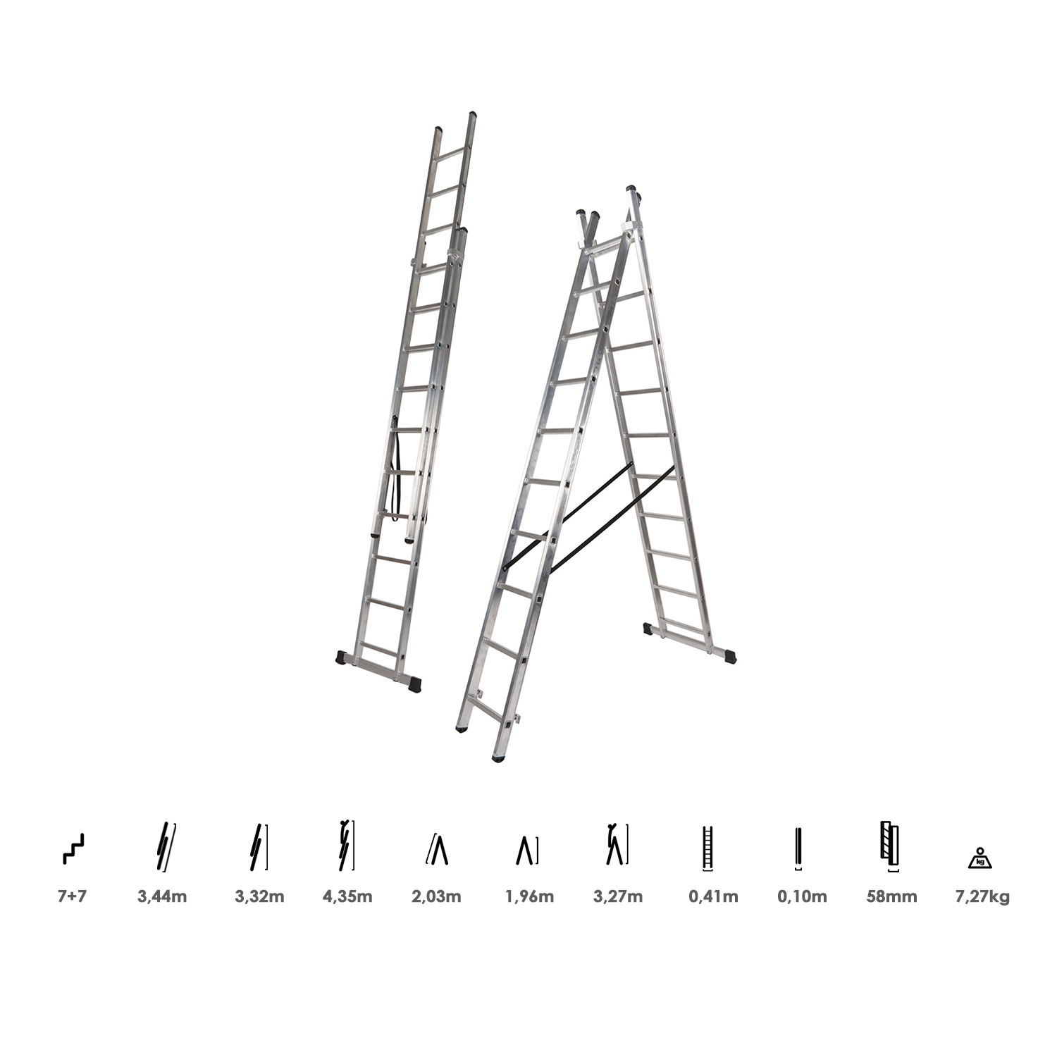Escalera Aluminio 2 Tramos 7+7 Peldaños
