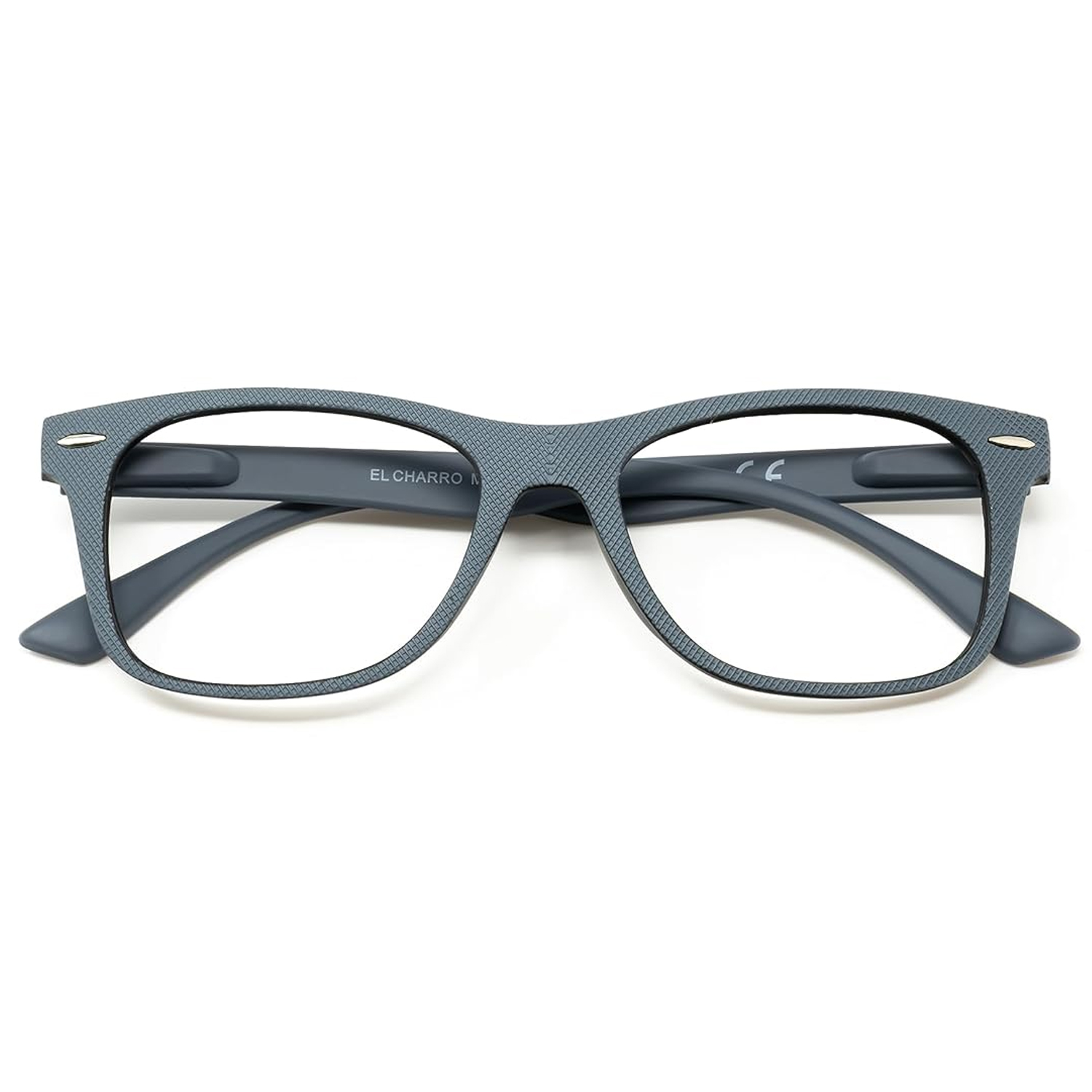 – Gafas de aumento para lectura con montura color gris con relieve.