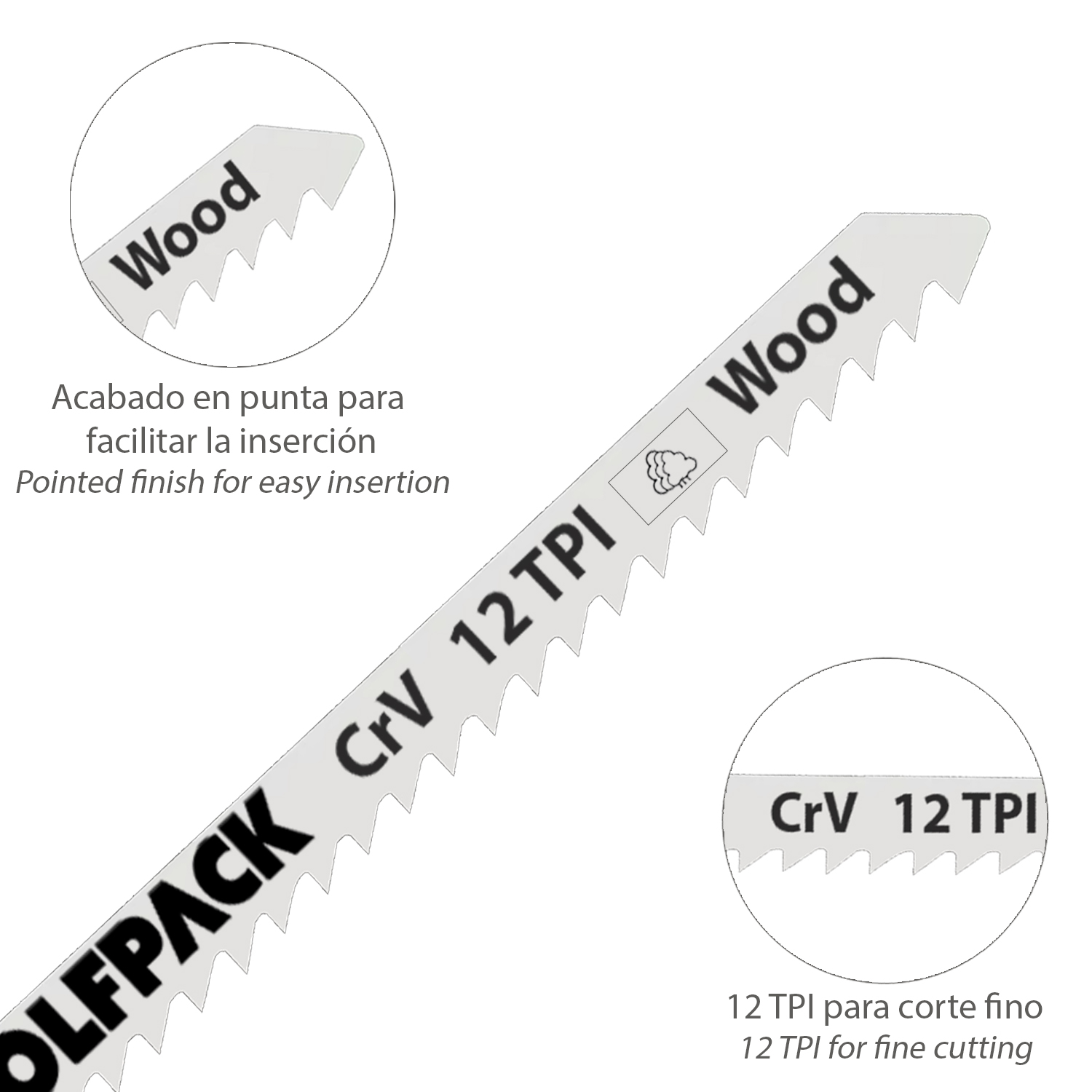 Hojas Sierra Calar Para Madera Corte Fino 5 Piezas. Hoja Cromo Vanadio 58. Vastago T Universal