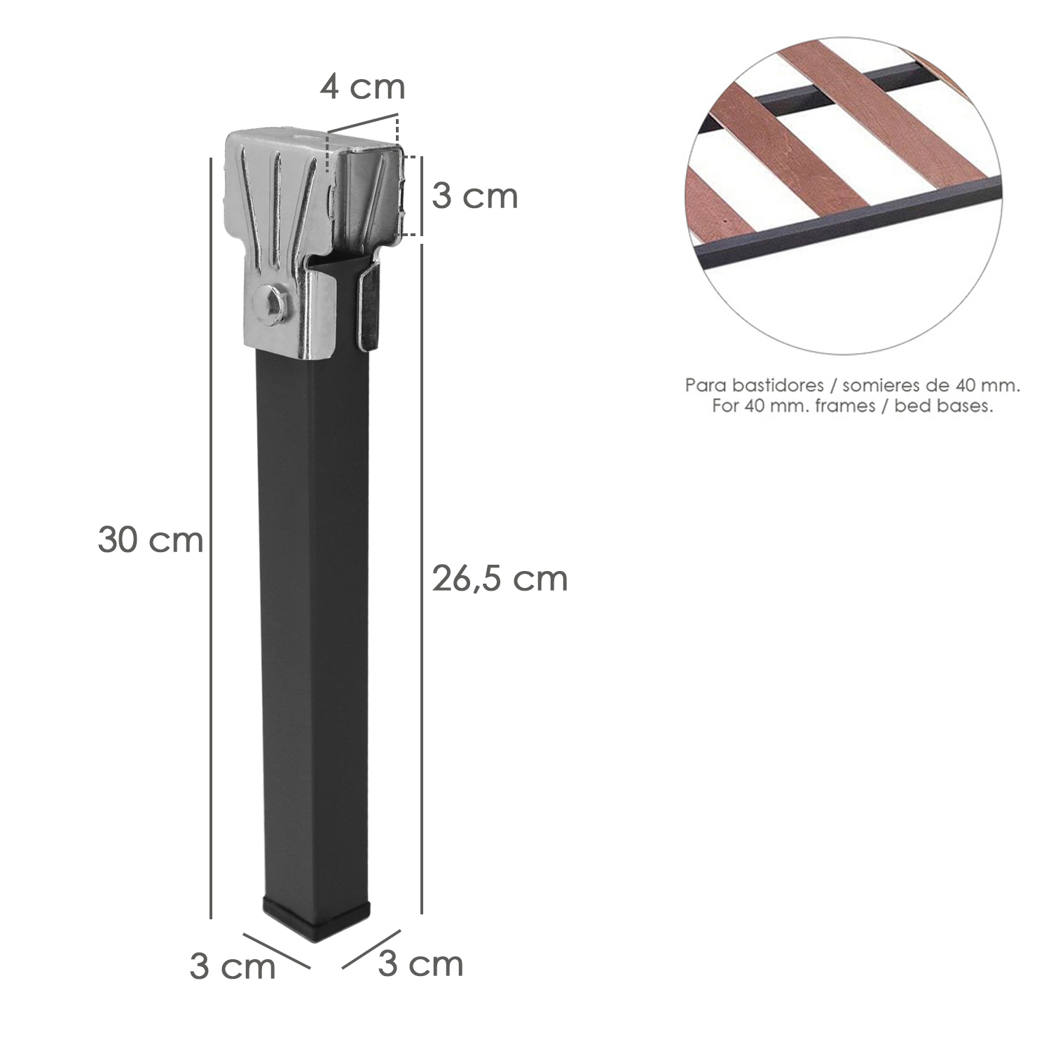 – Para somieres o bastirdores de 30×40 mm.