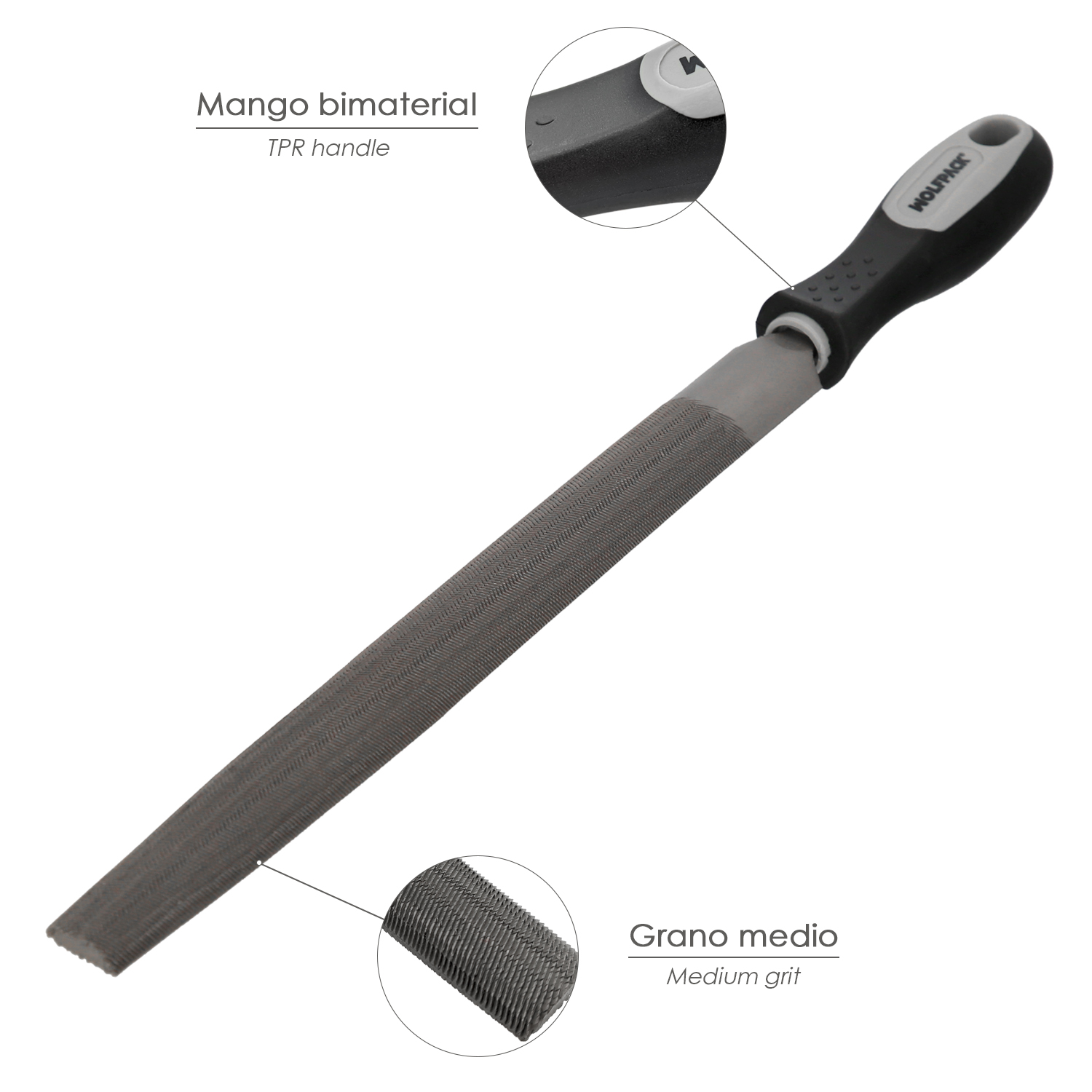 – Media caña: doble finalidad, lado plano para superficies planas o convexas y lado curvo para superficies redondas o cóncavas.