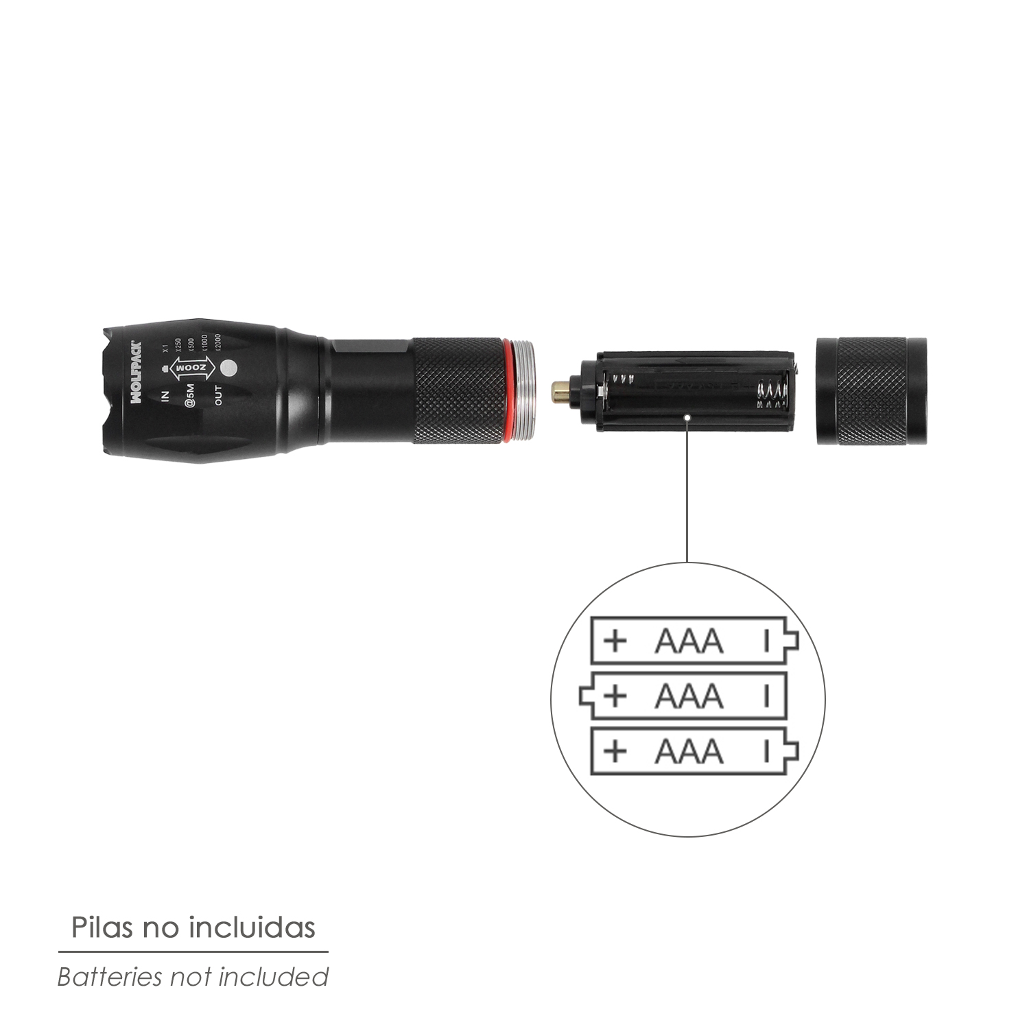 – Funciona con 3 baterias AAA (No incluidas)