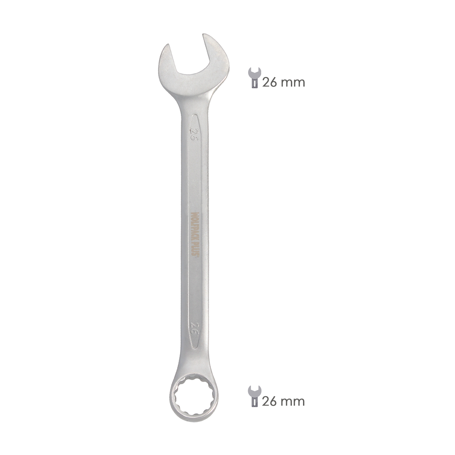 Llave Combinada Plus 26×26 Acero Cromo Vanadio DIN 3113. Llave Doble Boca, Llave Fija, Llave Estrella