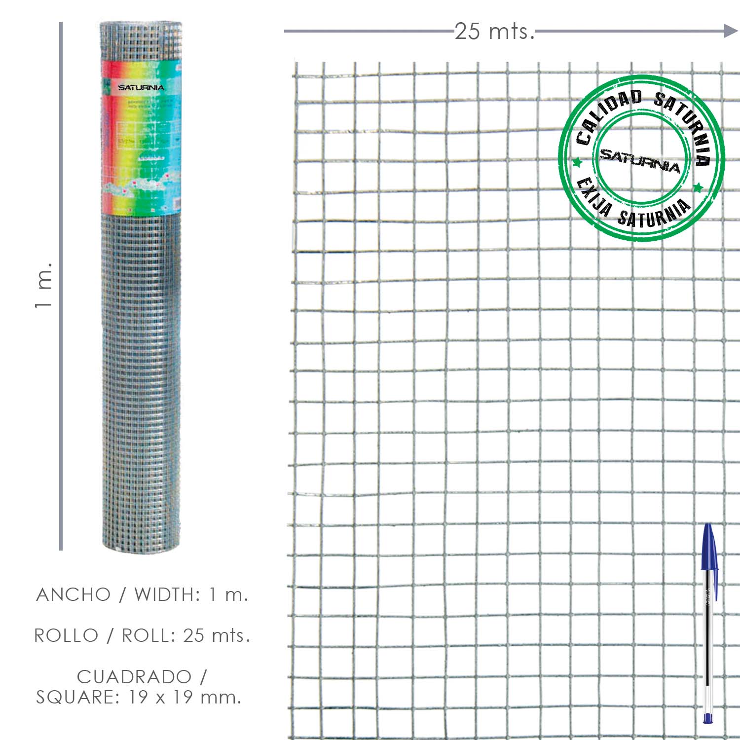 Malla Electrosoldada Galvanizada 25×25 / 1,60 / 100 cm. GD Rollo 25 metros.