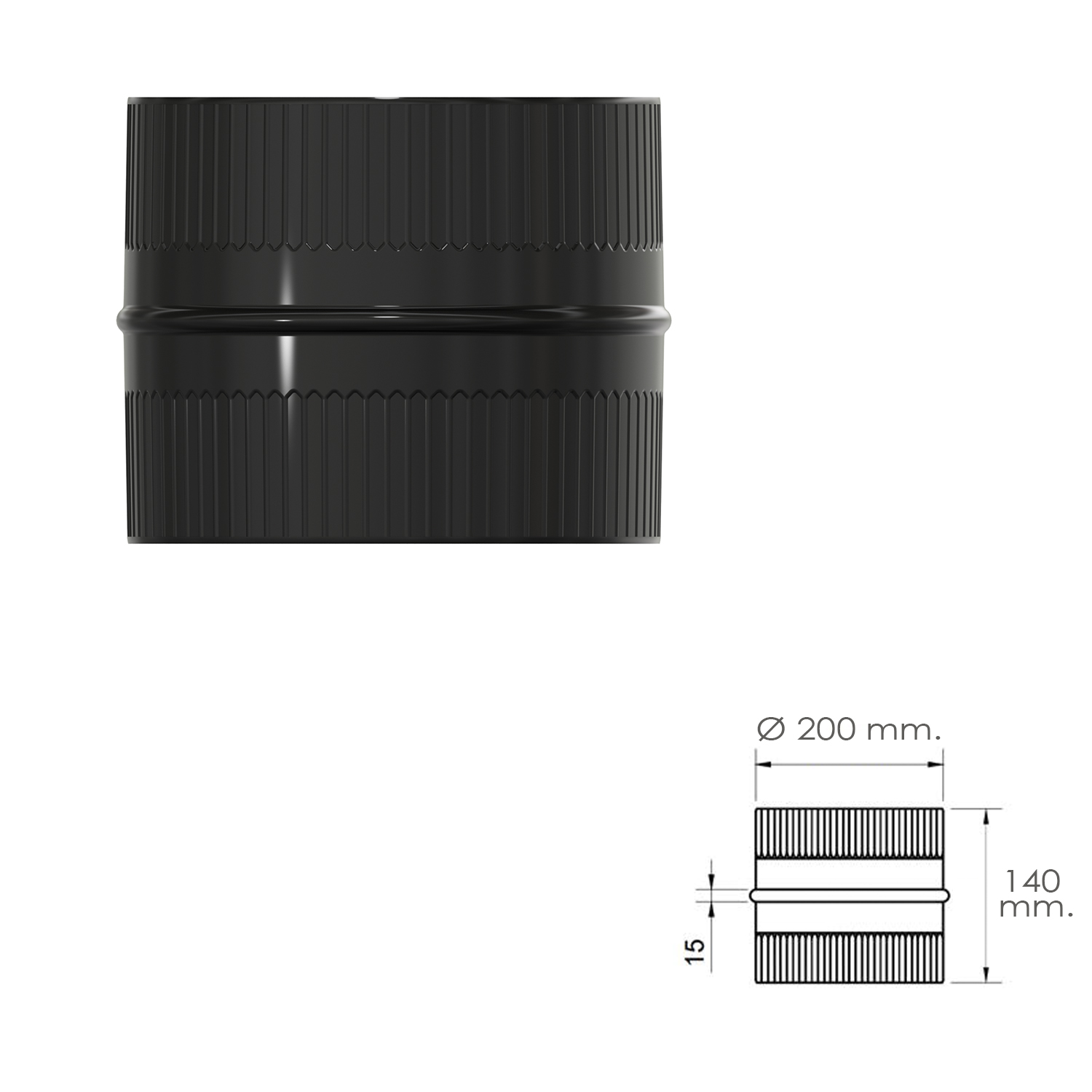 Manguito Union Tubos Estufa Vitrificado Negro Macho – Macho Ø 200 mm.