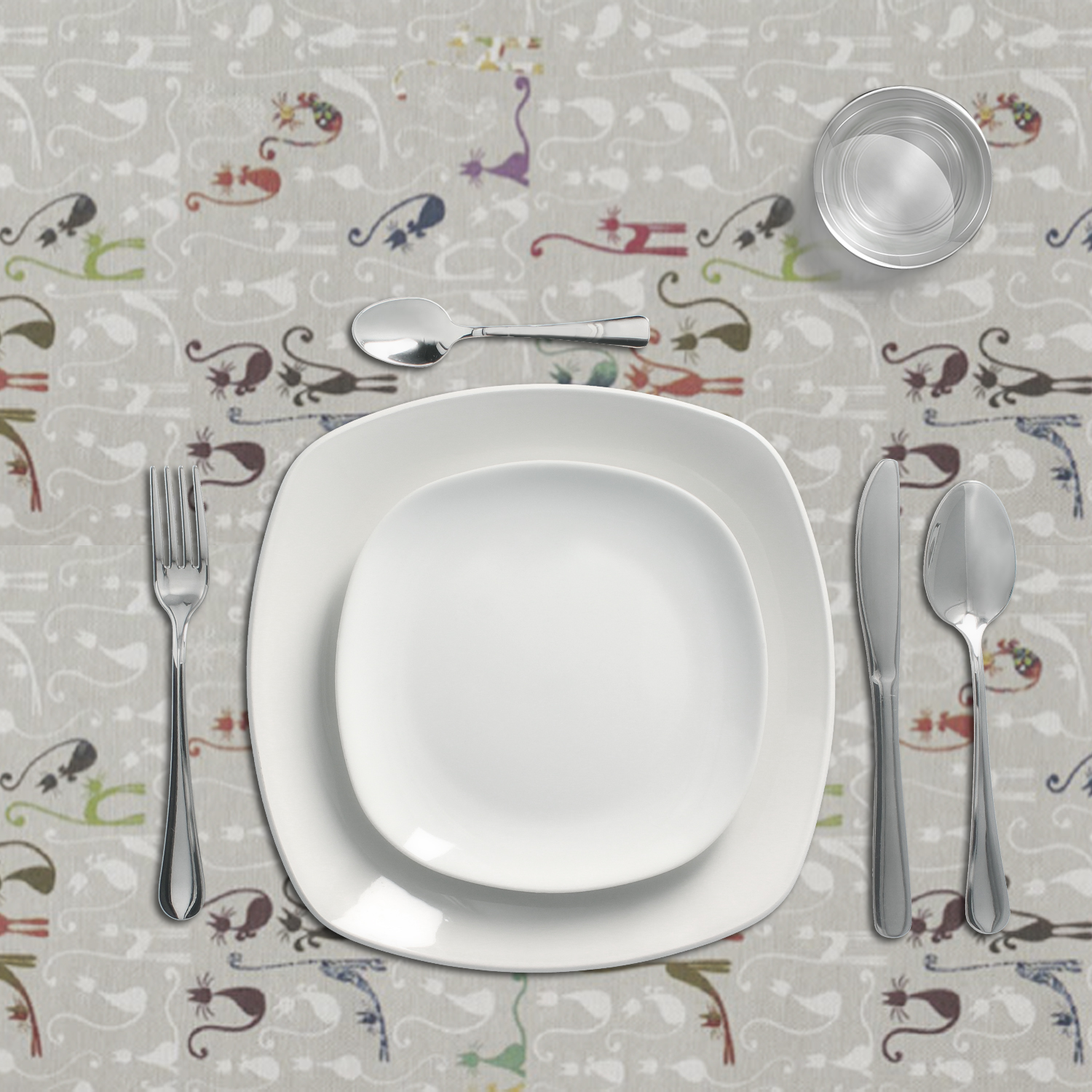 – Mantel Hule estampado con un motivo gatos multicolor.