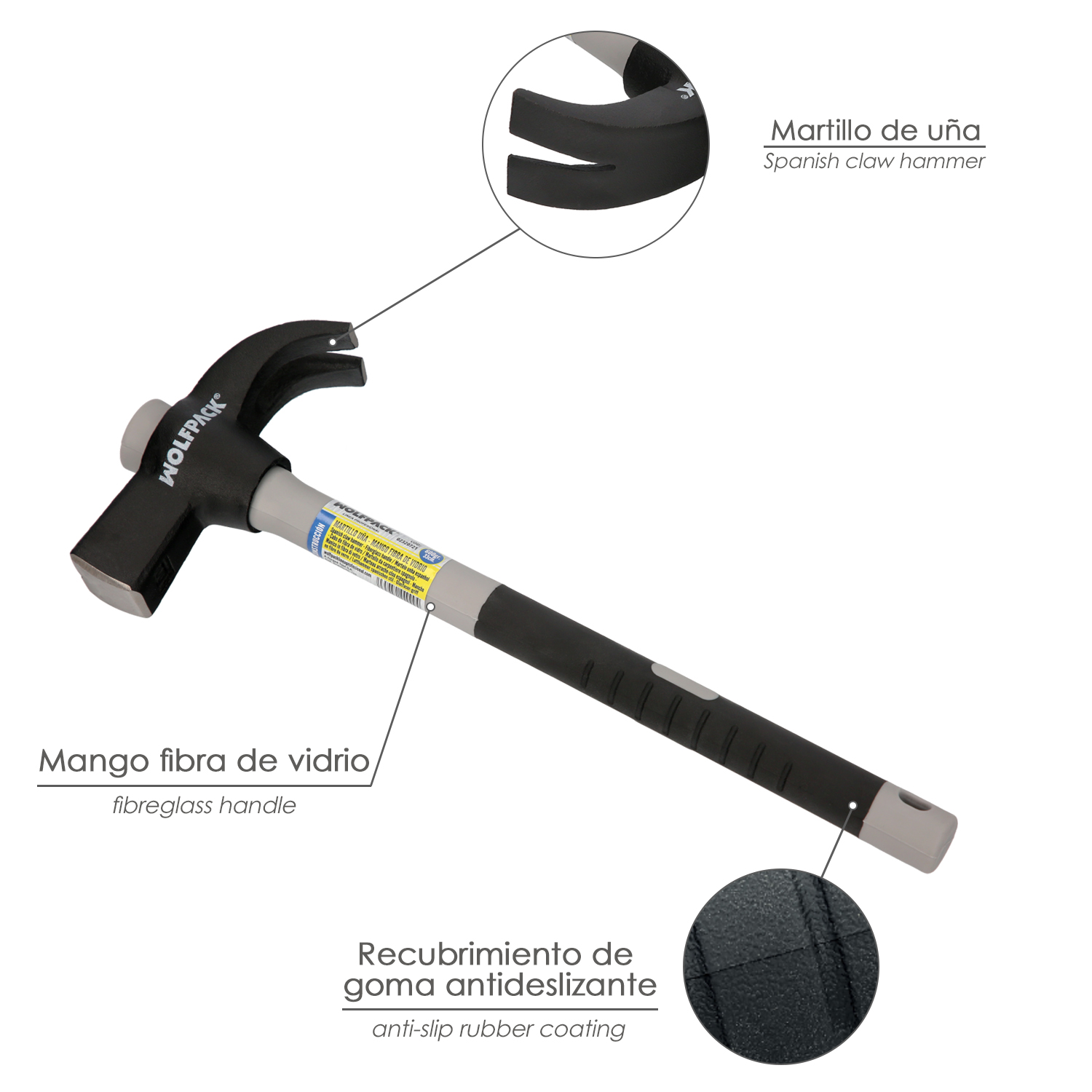 Martillo Uña Tipo Español Mango Fibra Vidrio