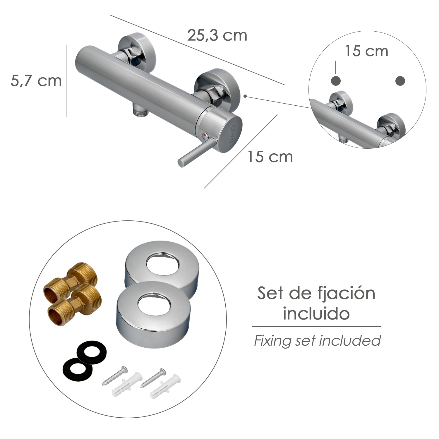 – Incluye maneral de ducha, flexo, soporte y set de fijación.