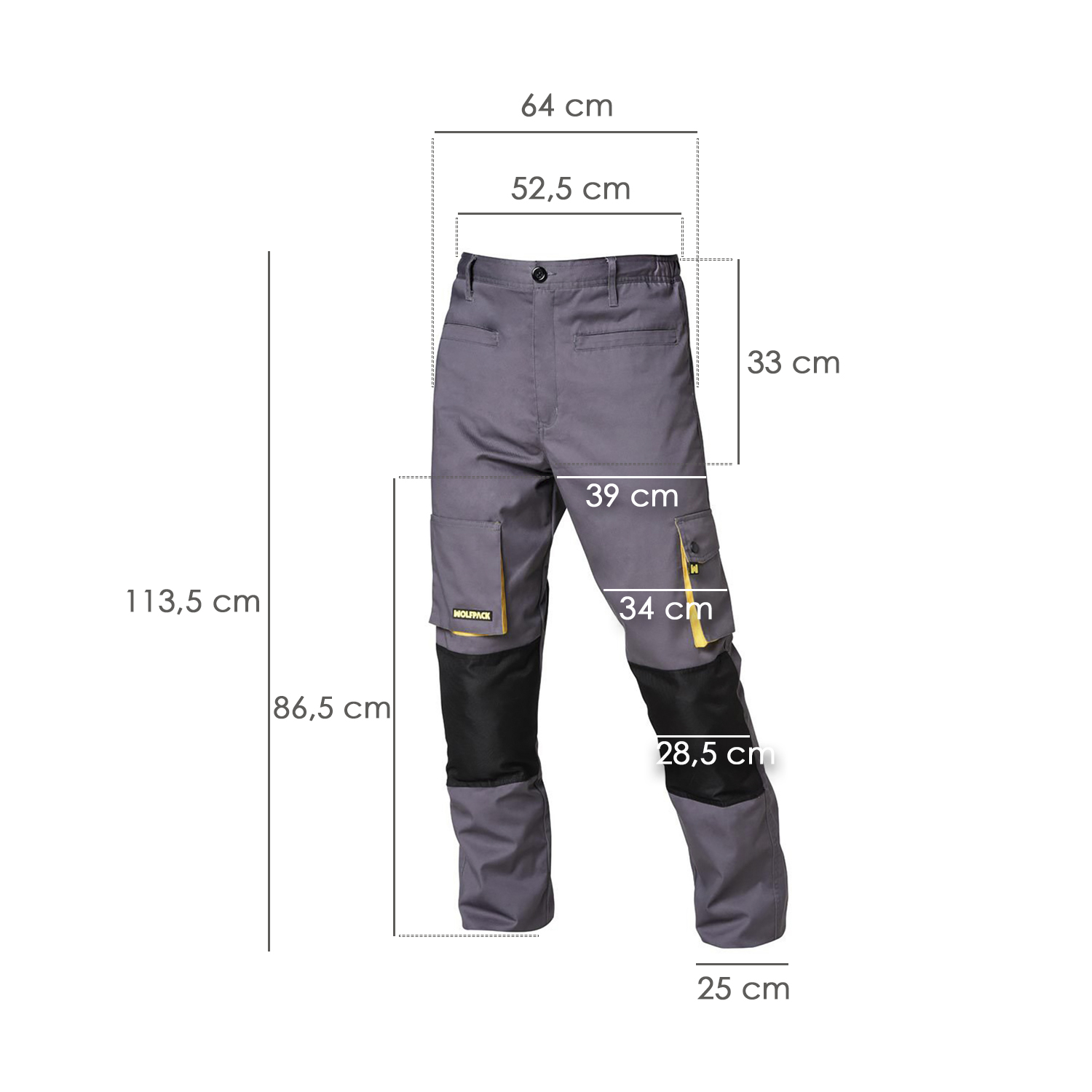 Pantalon de Trabajo Gris/Amarillo Largo Talla 58/60 XXXL