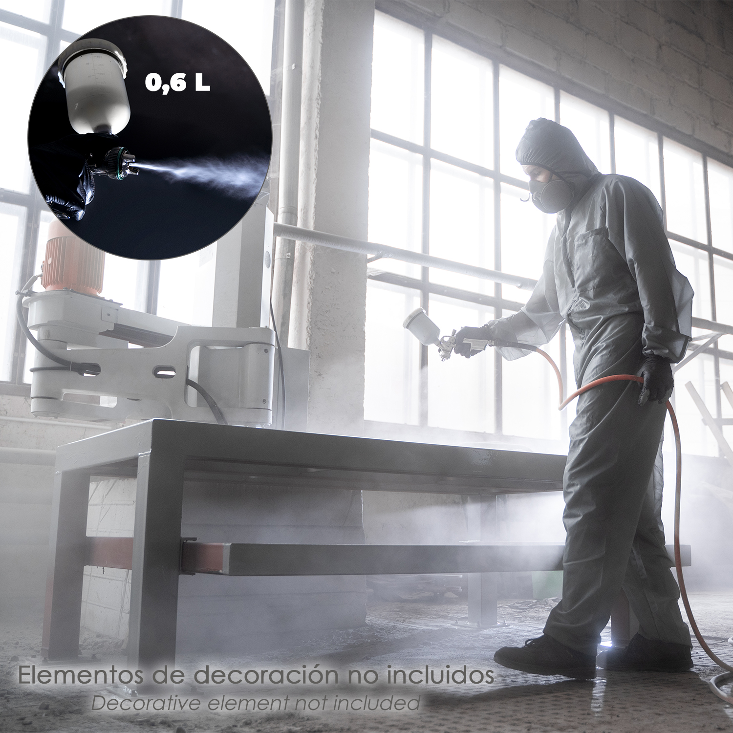 – Tanque de plástico de 0,6 litros para un resultado preciso y de calidad, apto para grandes superficies.