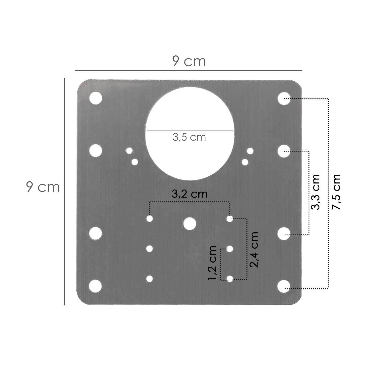 – Medida placa: 9×9 cm.