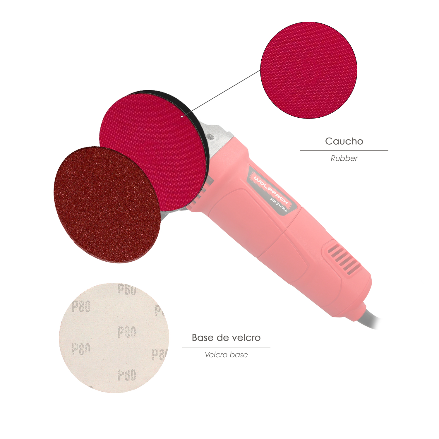 – Plato recubierto de velcro, los discos de lija tienen que llevar velcro para poder ser pegados.