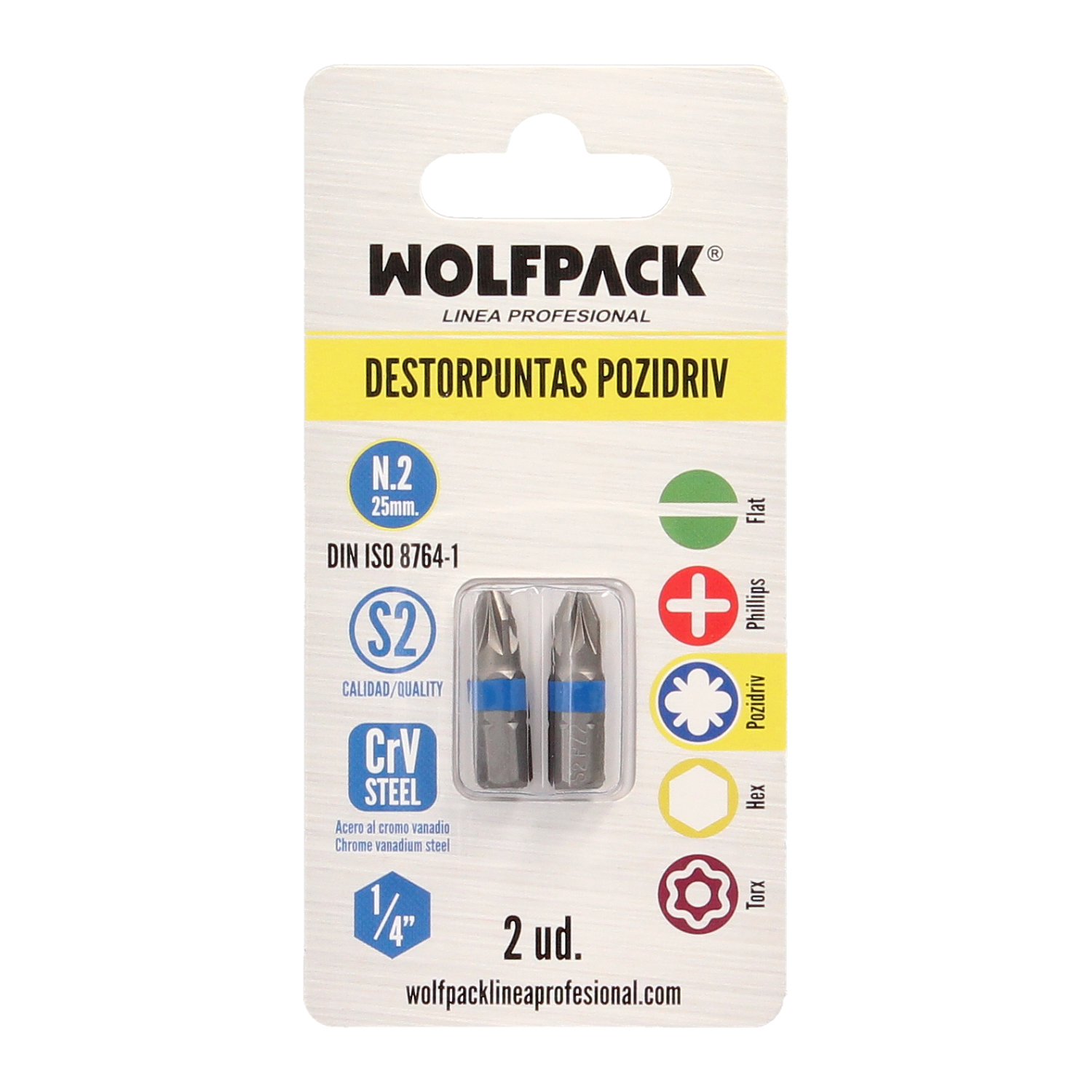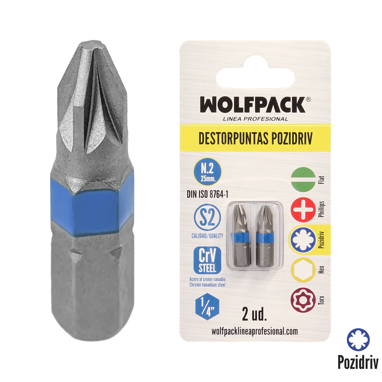 Destorpuntas Pozidriv Nº 2 (2 Piezas) Acero S2 al Cromo Vanadio