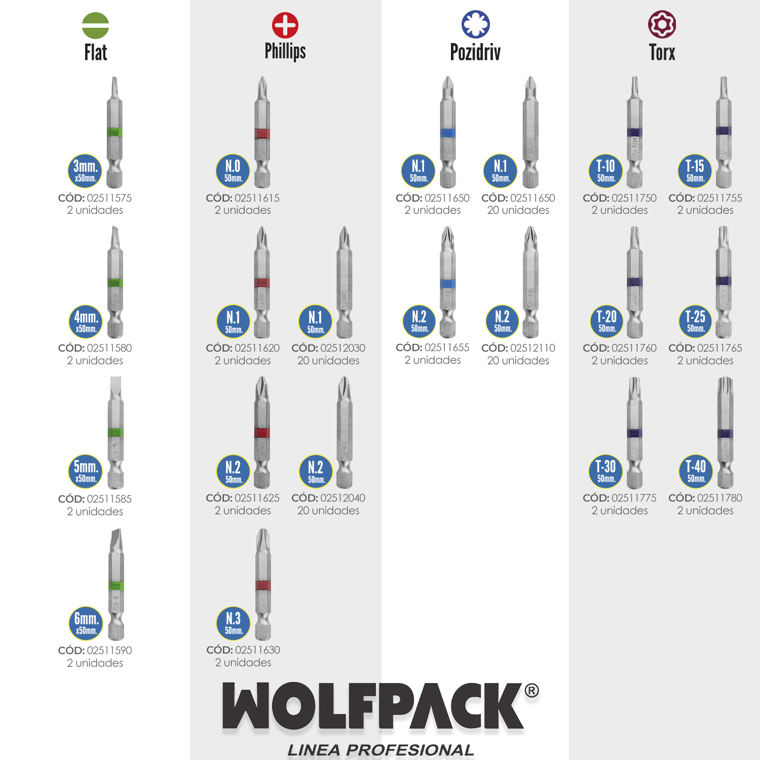 Destorpuntas Largos Phillips Nº 0 (2 Piezas) Acero S2 al Cromo Vanadio