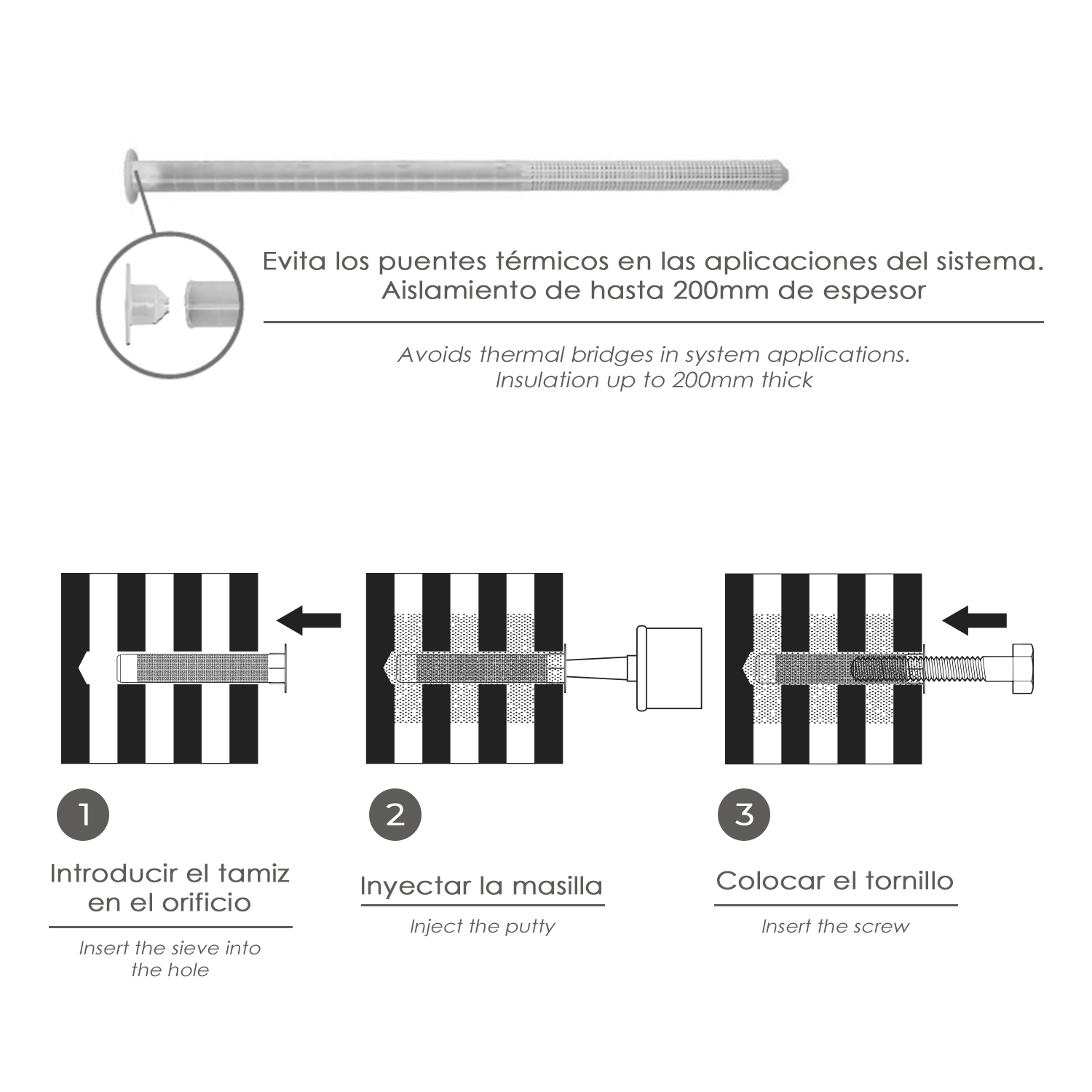 – evita los puentes térmicos en las aplicaciones del sistema, aislamiento de hasta 200 mm de espesor.