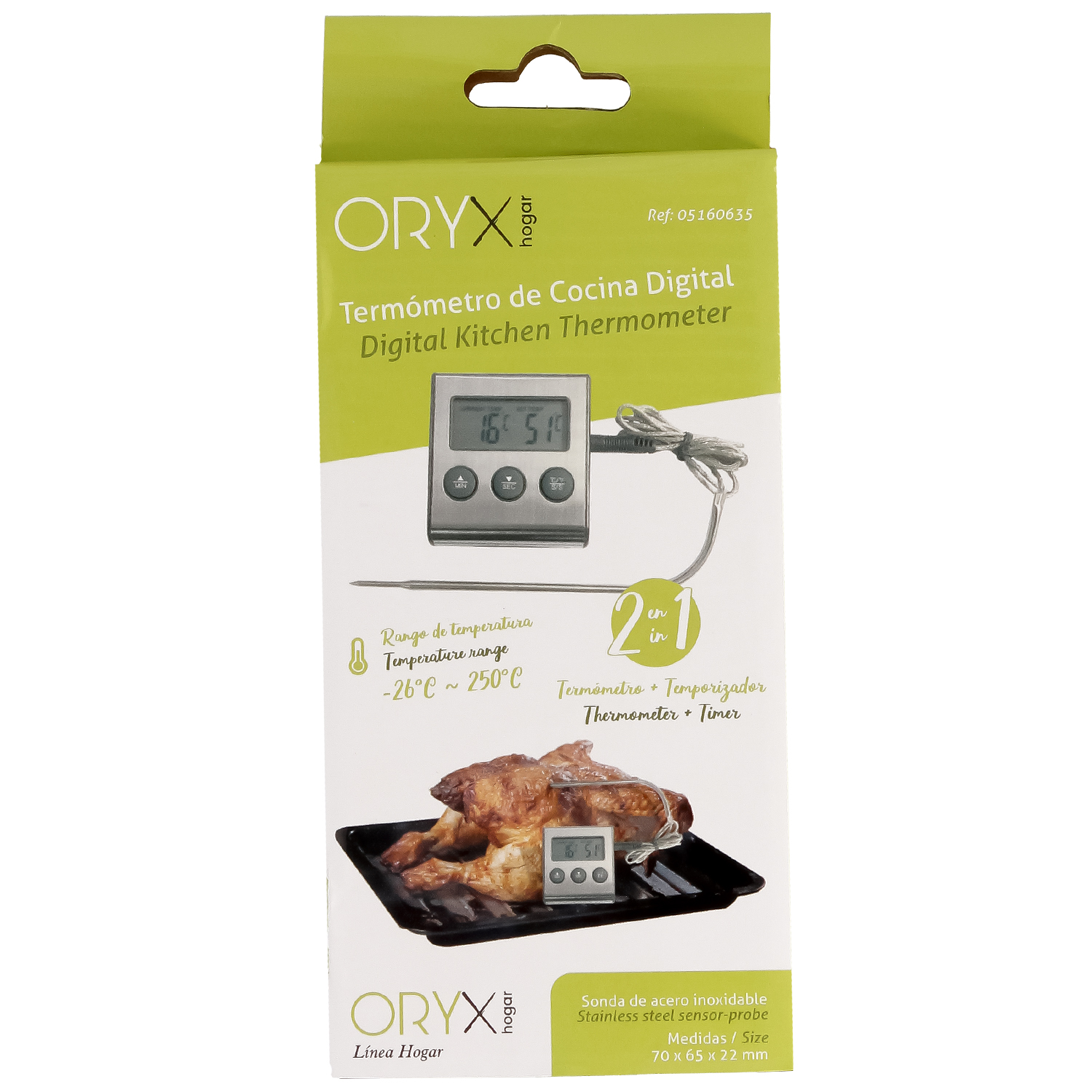 Termometro Digital Cocina Con Sonda Cableada, y Lector Temperatura Con Soporte, Lectura Instantanea, Termometro Horno / Barbacoa