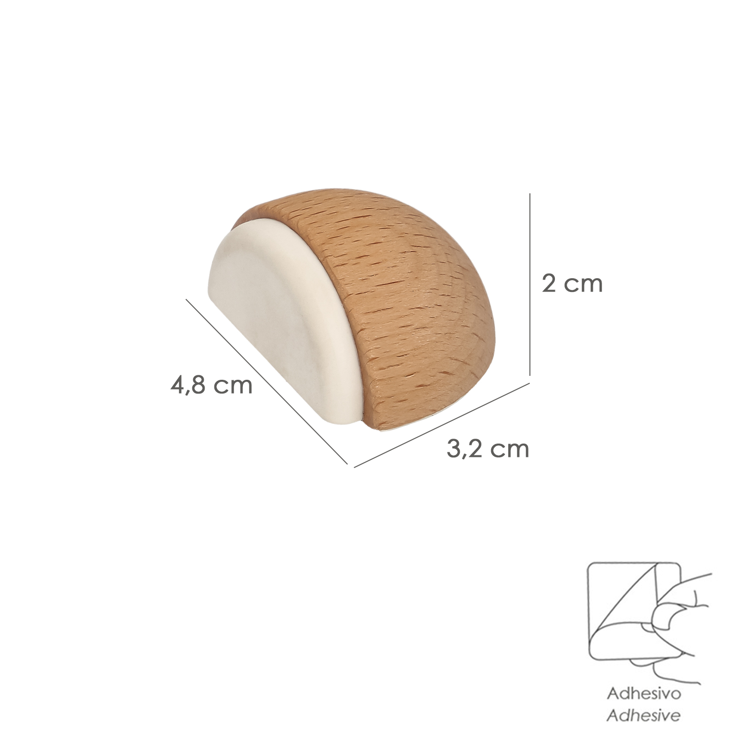 Tope Puerta Adhesivo Madera Media Luna Roble